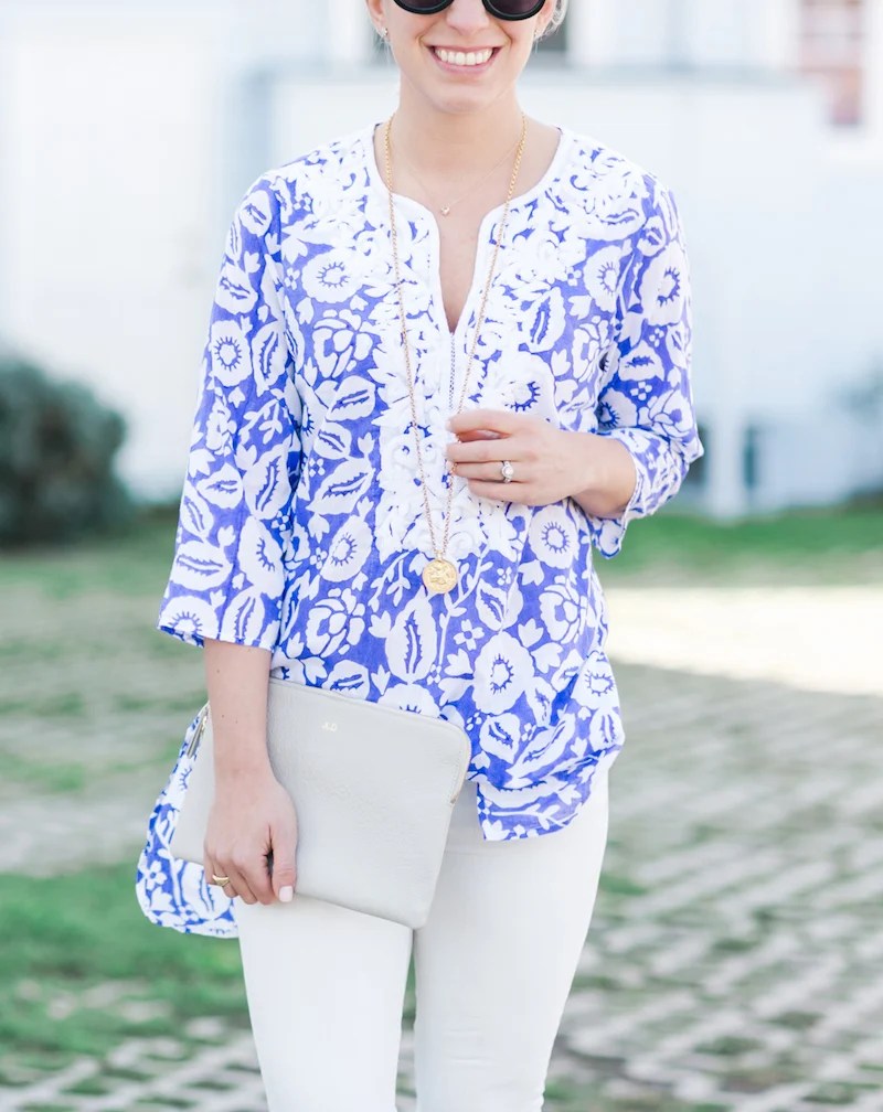 Tunic c/o Roberta Roller Rabbit / White Jeans / Clutch / Sandals / Necklace The first two days in LA were chillier than I had hoped. I arrived just after a heat wave ended so my dreams of laying on the beach were squandered pretty quickly upon landing. The bright side was that I finally … Continue reading Blue and White Tunic