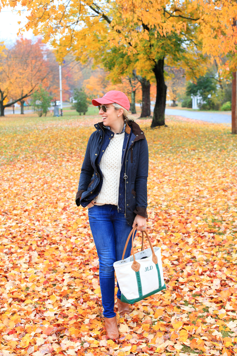 I was excited to finally use my new leather-handled LL Bean Tote (that I discovered from Carly a few weeks back) and this classic fisherman sweater for our little fall adventure. I was pretty bummed that I forgot my new Bean Boots, but I’m sure they’ll get plenty of use in the coming weeks. I have approximately 8,000 Boat & Totes, but I love the new elevated twist of leather handles. I have a feeling this will replace my day tote for a while. It’s so sturdy, so cute, and so classic!