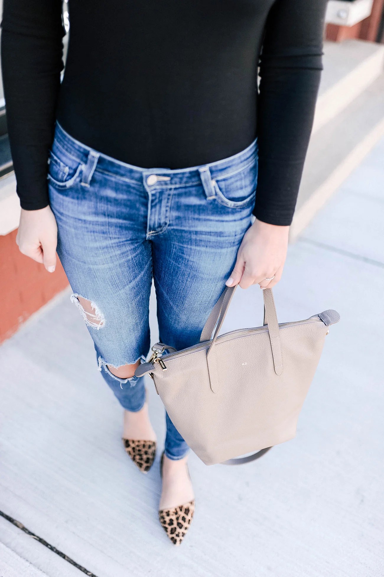 I was so nervous to wear this outfit and post these photos today, but I’m so glad I did because bodysuits are my new favorite thing ever. I just bought my first one a few weeks ago, and it took me that long to actually put it on. The act of getting dressed in it was hilarious and reminded me of putting a onesie on my daughter, but once you pull on a great pair of jeans over it, it’s no longer reminiscent of baby clothes.