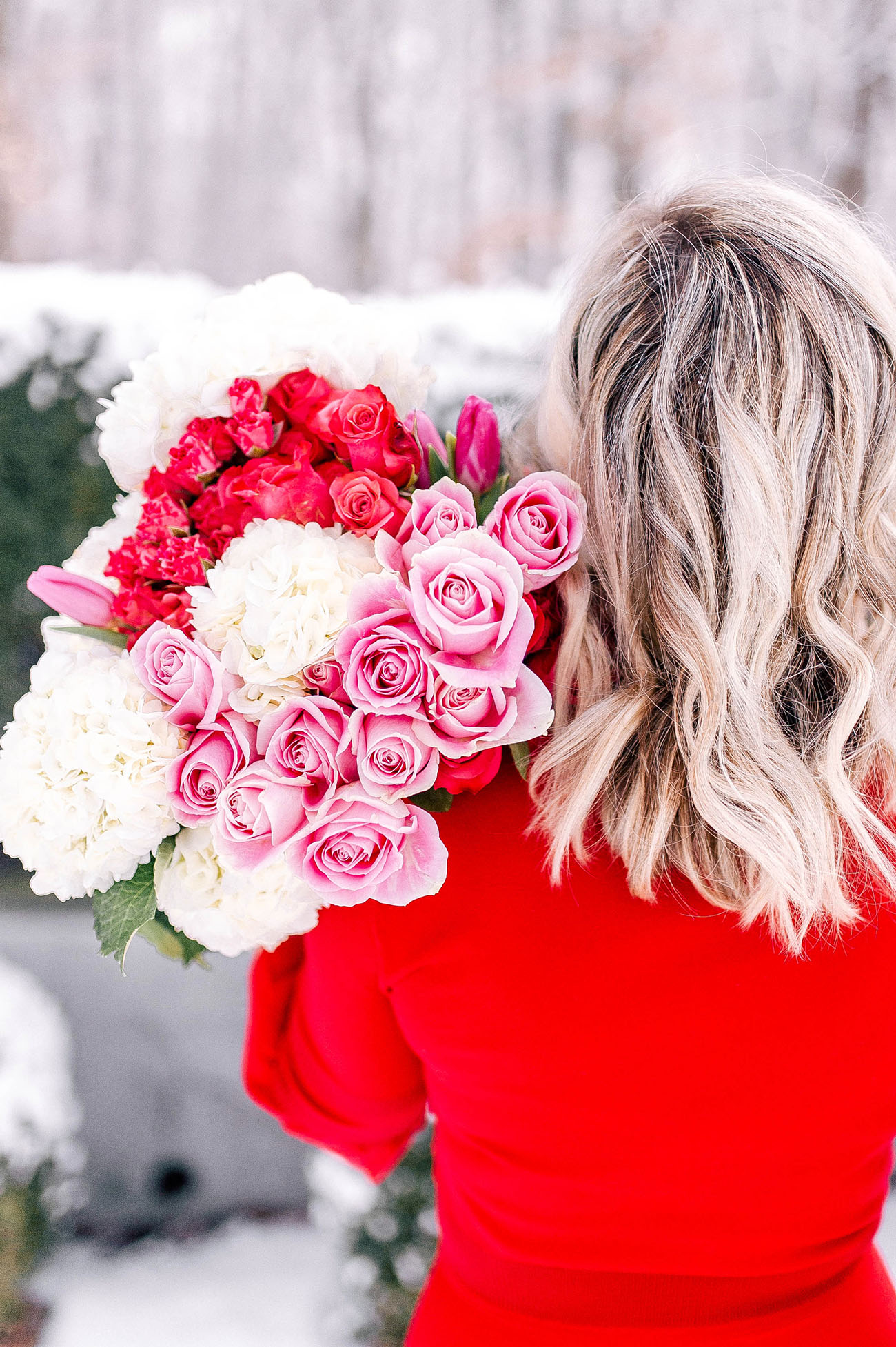 I was going to post this cute Valentine’s Day look earlier in the week, but didn’t even crack open my computer until yesterday. Before we left for LA, my friend Khira came over to do my make up and to teach me how to do a Valentine’s Day red lip look. I love how it came out! It’s romantic but not over the top, kind of like this red dress that would be perfect for a Vday date night. Draper James has free shipping and returns right now and a lot of cute dresses like this pink lace one that I love and this flirty frock.
