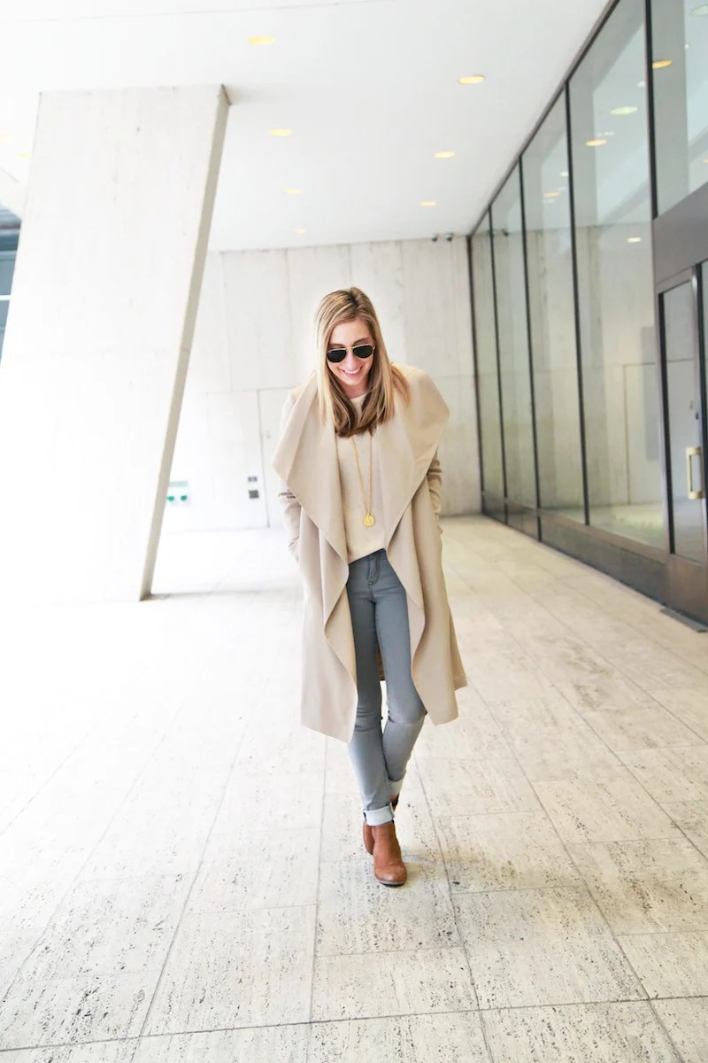 It was a Sunday, it was cold, and I didn’t feel like dressing up, but I wanted to look chic enough to spend a few hours with the rich and famous so I went for neutral-chic in this F.A.B.U.L.O.U.S. Club Monaco wrap trench coat.