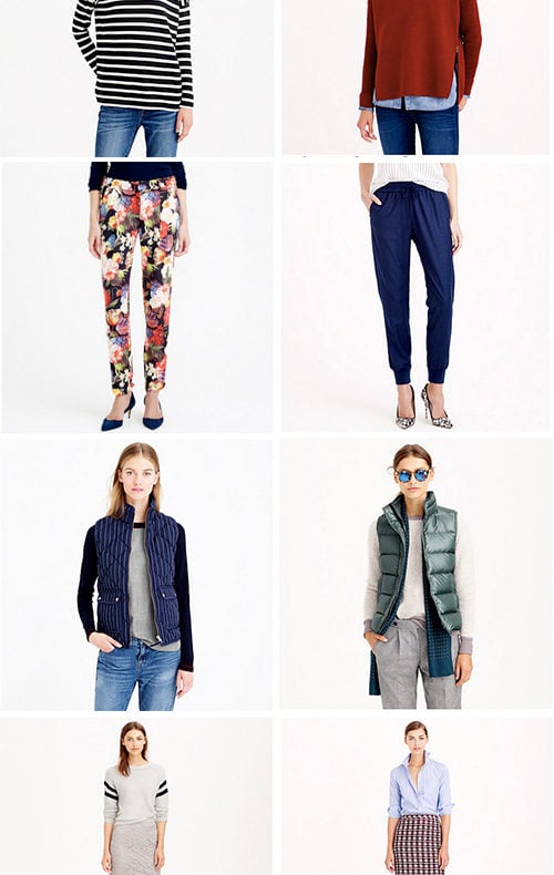 Turtleneck / Red sweater / Floral pants / Navy pants / Striped vest / Puffer vest / Lace skirt / Tweed skirt Today is the last day to shop J.Crew's 25% discount (use code SHOPFORFALL...